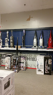 As you can see that sign probably fell off the wall and was just left there behind the vacuums.